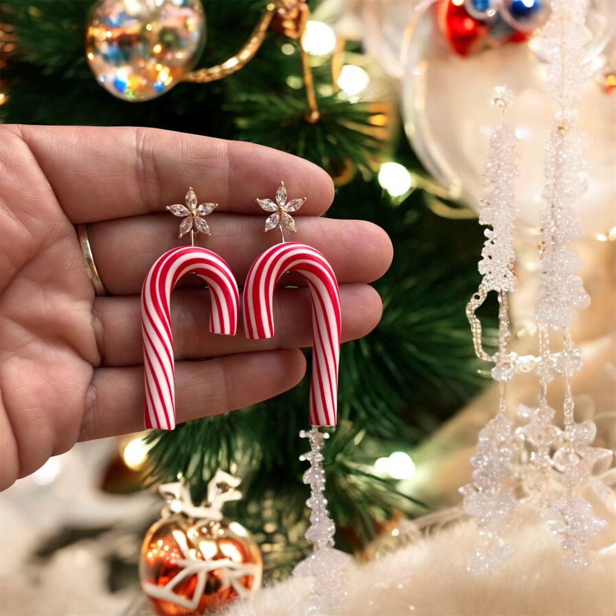 🍭 Handmade polymer clay candy canes—festive, fun, and ready to dangle with holiday cheer!